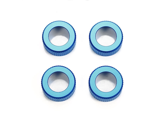 できるだけお安くご購入いただくために送料は商品ご購入後にお知らせします。 送料をお知らせした後に改めて対象送料のページよりご購入をお願いいたします。 こちらの商品のみであれば、ゆうパケット送料270円コースを一緒にご購入ください。 ご不明な点はお支払い決済前にお問い合わせください。 【 RCカーの性能アップやセッティングに役立つパーツです 】 SSBBダンパーなどの大径スプリングを低くマウントするためのリテーナーです。ダンパーエンドとピストンロッドに挟まる部分の肉厚を薄くすることで、スプリングをダンパーの低い位置にセットでき、スプリングの動きがスムーズになり、ダンパーストロークを最大限に発揮。また、マシンの動きが軽快になり、コーナーの切り返しなどの車体レスポンスが向上します。 【 基本スペック 】 ブルーアルマイト加工されたアルミ切削製リテーナー4個と、5.5×0.5mmアルミスペーサーも4個セット ※大径スプリング装着車に使用可能 ※サスアームの種類、ダンパー角によってはサスアームに干渉する場合がありますので、干渉部分を削ってご使用ください。