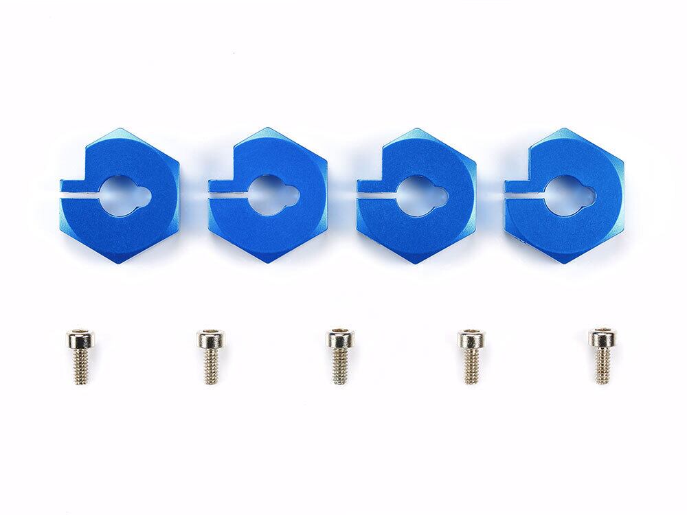 【 基本スペック 】 ブルーアルマイト加工されたアルミ製ホイールハブ4個と1.6×4mmキャップスクリュー5本をセット