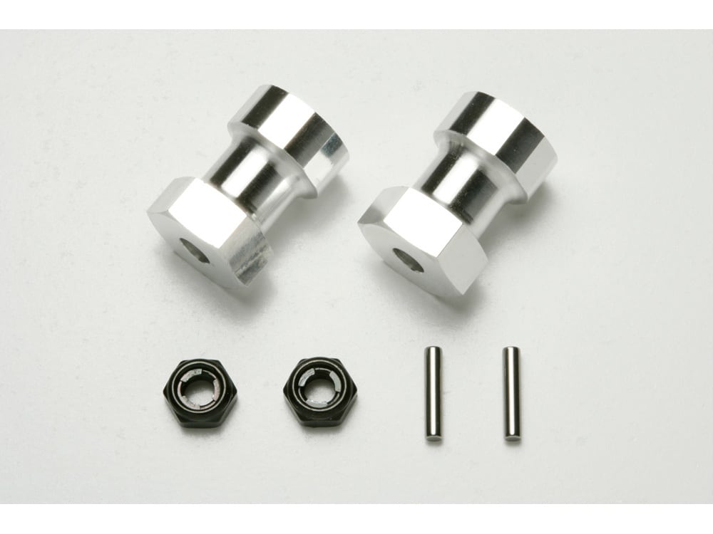 精度の高いアルミ製六角ホイールアダプターです。OPパーツの各種オフロード用リヤホイールが装着でき、タイヤ選択の幅が広がります。マイティフロッグの他に、グラスホッパーやホーネットにも使えます。