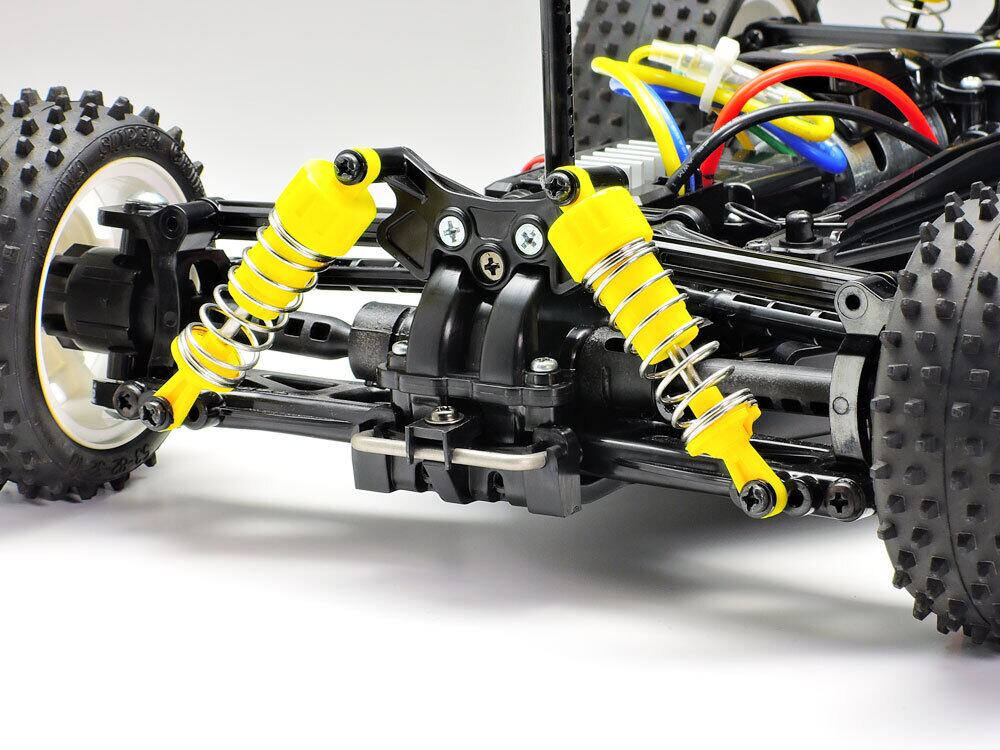 【 RCカーの性能アップやセッティングに役立つパーツです 】 標準装備のU字シャフトに換えて使います。スチール製サポートブリッジと2本のステンレスサスシャフトで構成。サスアームのガタを減らして滑らかな作動を生み出します。また、左右別々にサスアームを組み立てられるので、メンテナンス性もアップします。