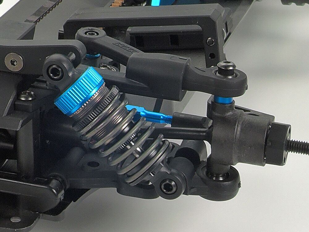 サスマウント(後部)を吊り下げ式とし、リヤまわりの剛性をアップさせることでグリップと走行安定性を向上。ダンパーはSSBBタイプ。