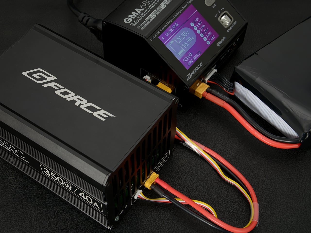 GMA6800SP充放電器(G0401)と連携して、最大40A/350Wの圧倒的な大電流放電を実現。大容量のバッテリーもストレスの無い高速放電を可能にします。